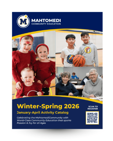 Welcome to Mahtomedi Community Education!We offer classes, activities, and events for all ages in and around the Mahtomedi area!Winter-Spring 2026 registration is open! Explore current offerings by clicking the catalog button or image below.Early Childhood Families:Our 2026-27 Early Childhood catalog is now available to view online. Click the image or button below to explore.Preschool registration follows our tiered process, with enrollment opening January 20, 2026 for currently-enrolled Mahtomedi Early Childhood families. Winter-Spring 2026 Catalog Early Childhood 2026-27 Catalog Need to make a change to your enrollment? Accidentally registered for the wrong session? Have a question about a program? Call the Community Education office at 651-407-2018 or email us at communityed@isd832.net. Financial Assistance/Discounts: If you have a gift certificate, UCare discount or qualify for a financial assistance and would like to apply it towards your community education enrollment, call or email the office to register through a staff member. Discounts and financial assistance are not available online. Facility UseDistrict facility use is managed by Mahtomedi Community Education. If you are a new user, click here to visit the Facilities Use website for more information. Thank you! View Registration/Payment InformationFind and update your account information and registrations by logging into your Eleyo account below. Log In Now Get in TouchIf you have questions about our programs our registrations, please feel free to contact us. Contact Us